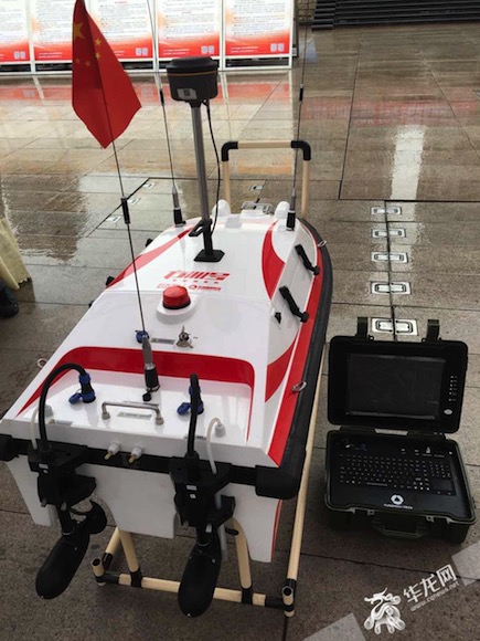 现场展出的无人测绘船。首席记者 佘振芳 摄