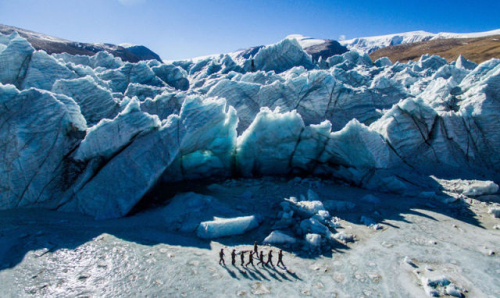 1月19日,西藏自治区山南市浪卡子县的普玛江塘边防派出所官兵在岗布冰川下巡逻