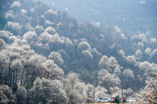 3月2日,游客在安徽金寨县铁冲乡玉兰花谷内游览