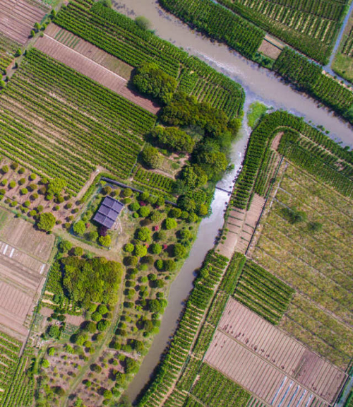 “桑蚕之乡”——浙江省桐乡市西牛桥村的农田被绿油油的桑树覆盖(2016年4月17日摄)。