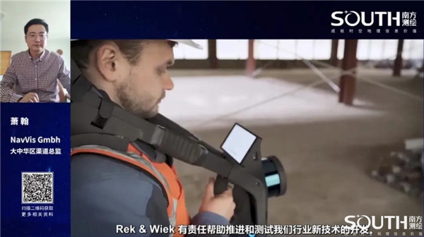 产品揭幕后,NavVis大中华区渠道总监萧翰为大家介绍了VLX的相关情况,室内数字化及定位导航团队在直播中实际操作设备,带着直播间的朋友们使用新产品,首都师范大学副教授谢东海带来SLAM算法的科普讲解。