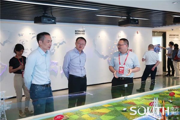 在PA视讯集团副总经理缪小林、葛瑞华的陪同下,来宾一行参观了PA视讯体验中心,详细了解了PA视讯的发展历程和测绘地理信息行业的新技术、新应用,体验了南方虚拟仿真教学系统,并参观了位于PA视讯地理信息产业园的高精度卫星导航生产研发中心。