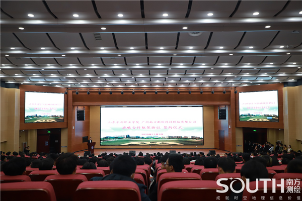 随后,王启田与成德桂分别代表校企双方签署现代学徒制试点校企合作框架协议,于纪玉与向高照进行“PA视讯学院”揭牌及测绘软硬件捐赠仪式。
