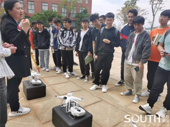 周斌为学校师生带来无人机航测理论及实操讲解,在现场试飞中一一解答师生们提出的问题。