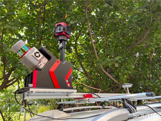 本次交付的设备SZT-R1000车载移动测量系统包含三维激光数据采集系统、内业数据处理软件系统两大部分。高精度三维激光扫描仪、GNSS卫星定位系统、惯性导航系统、全景相机、控制模块及时间同步等模块高度集成,能够方便快捷地安装于无人机与汽车等移动载体上,融合多种定位模式,更快速获取高精度、多源数据。通过配套软件进行数据处理与加工,快速获取DOM、DEM(DSM)、DLG等4D数据成果以及三维模型,更精确高效地服务于工程项目建设。