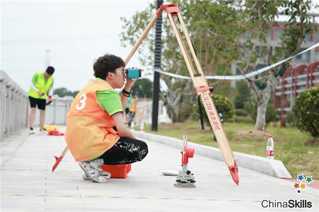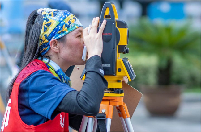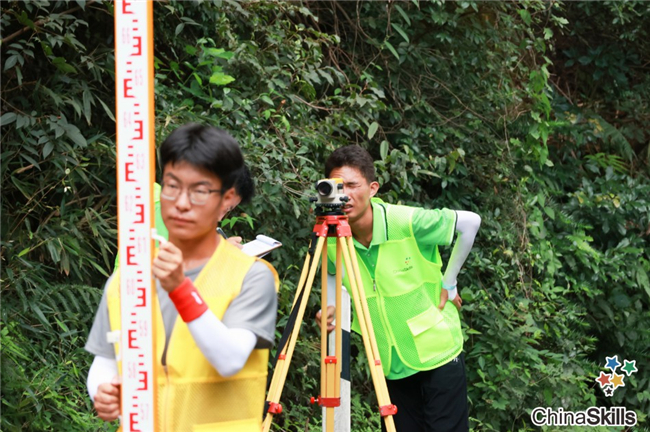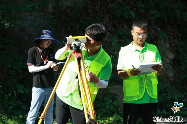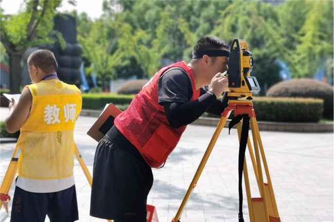 根据赛程安排,8月22日~23日两天的比赛均在上午8:00开始。全副武装的参赛选手们手持测量设备,齐聚在路线起点处,在裁判的一声哨响后迅速行动,各司其职:负责测量的选手一次次架站、读数据、记录,聚精会神,一丝不苟;负责观测点的选手一次次调平、保持气泡居中,屏气凝神,坚如磐石。