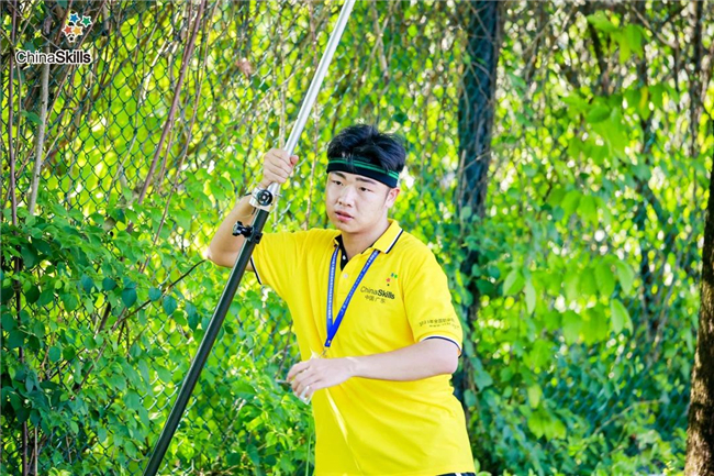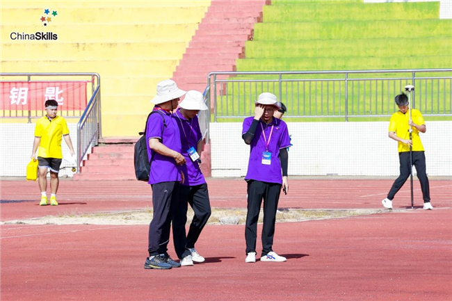 参赛选手在各赛项检录处报到并领取设备后,与队友一起熟练检查设备各项功能。上午的比赛场次在7点准时分批开始,在各参赛队伍进入比赛区域准备区后,裁判员重点强调了主要注意事项,队员们认真倾听,随着一声令下,队员们拿着设备快步进入测量目标区域,架站、调整、读数、记录、换站,分工合作,一气呵成。
