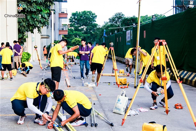 8月30日-31日两天比赛日,狂风骤雨过后的广州难得的云疏风轻,此前的酷热难当也得到缓解。凌晨5点多,一辆辆大巴车载着参赛选手进入广东工贸职业技术学院校园内,按照前一天的抽签安排,有序地落在校内已经划分好的1:500数字测图、二等水准测量和一级导线测量3个赛项分布点,2023年全国职业院校技能大赛高职组地理空间信息采集与处理赛赛项也正式开始。