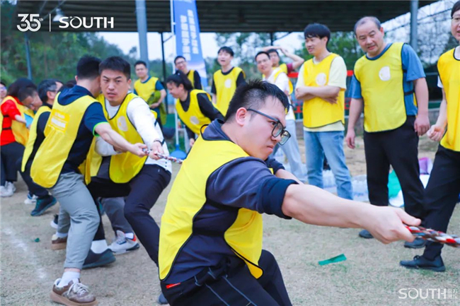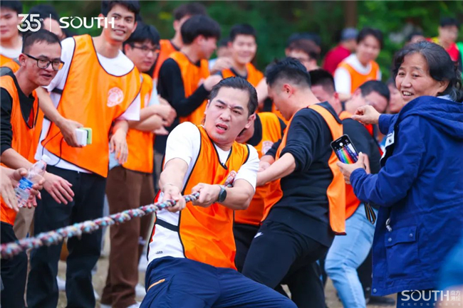每队16人参赛,5支队伍同时发力拔河, 最先把绳子中心圆环拉出比赛区域的队伍获胜,决出半决赛2个队伍。其他8支队伍抽签PK决出另两支队伍,最终决出赛项排名。