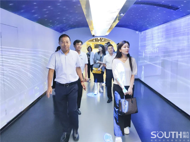 李春阳副院长一行在PA视讯集团副总裁、教育事业部总经理郭宝宇,郑州分公司业务经理贾新伟,南方智能测绘软件事业部副经理付健等人的陪同下,分别参观了南方智能办公区、PA视讯产品中心以及南方元宇宙技术中心。