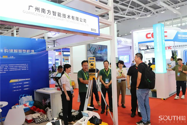 南方展台展出的NTS-582R20-ML机场净空测量仪、VLX可穿戴式移动扫描系统、精蛰双频管线雷达等创新型数据采集装备吸引了众多嘉宾驻足观看并试用,便捷、高效、精准的使用体验广获好评,南方智能软硬件一体化服务能力再次获得肯定。
