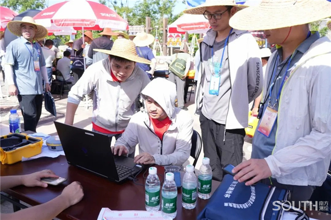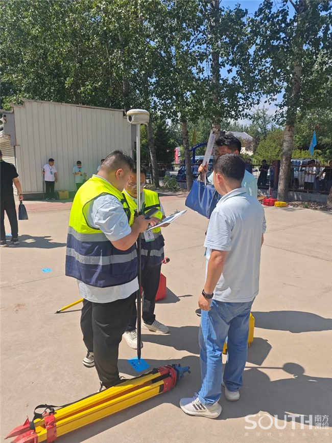 竞赛开始后,每组参赛的10支队伍共20人迅速进入赛场选点采集,完成一个点后又奔赴下个采集点,赛场气氛热烈,随处可见参赛选手拿着RTK、扛着三脚架快速行走的画面。