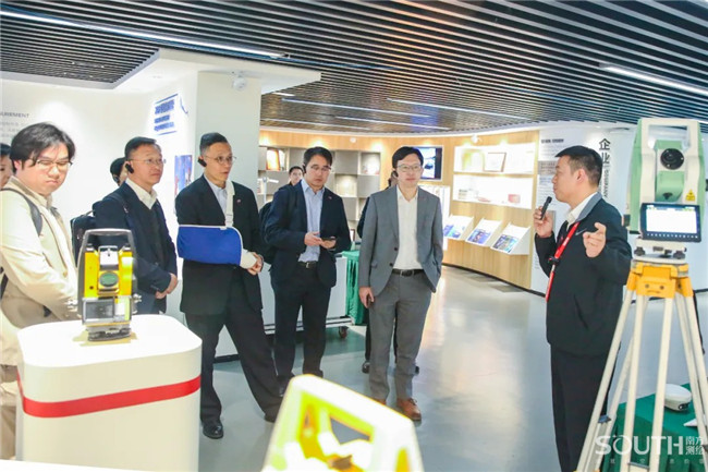 在参观过程中,专家团一行重点了解了机载激光雷达、测绘无人机、高精度超声波马达全站仪、室内外一体化导航定位终端、城市地下管线探测仪、轨道交通系列装备等智能化数据采集获取设备和成熟应用解决方案,并与技术人员交流了解相关装备或方案的应用场景和市场应用程度。