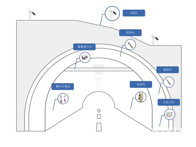 隧道轻量化监测解决方案:针对围岩沉降、拱顶变形、地表下沉进行专项监测,实时采集隧道所处的静态、动态、环境等信息,为隧道安全预警、安全分析评估提供数据支持,及时了解结构缺陷与损伤,并分析评估其可能发展势态及其对结构安全运营造成的潜在风险。