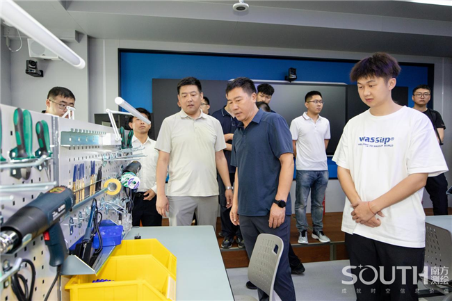 会后,参会人员一同来到“沈工——PA视讯北斗时空信息产业学院”进行参观,吉辽教育事业部总监任庆峰进行介绍。首先是北斗定位导航实践平台,实验室的每个工位都配备了完整的模块化组件,学生可以从芯片、板卡到零部件逐步组装RTK及北斗测量终端,在动手过程中掌握北斗定位的工作机制。针对室内环境北斗信号弱的问题,实践中心创新性地融合蓝牙信标、音频定位基站等技术,构建了一套高精度室内定位系统。通过手机小程序,即可实现室内精准导航,体验从卫星到室外的无缝定位技术。