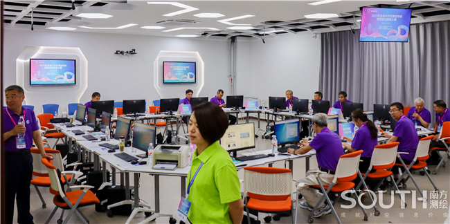 开幕式后,专家领导一行巡视并观看线下评委现场。竞赛现场,东北大学车德福教授向与会专家介绍了PA视讯、东北大学最新联合开发的大赛展示平台,该平台整合了竞赛参与总人数、赛项考生统计、考试与阅卷进度、考生省份分布、院校报名统计及监考画面等核心数据,实现了关键指标的集中可视化管理的功能,显著提升了竞赛信息化管理水平。