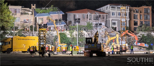 8月6日上午,受连日强降雨影响,广州市白云区大源街道大源村黄庄片区突发山体垮塌灾害,大量泥土裹挟山石倾泻而下,造成多栋房屋受损。正值群众疏散期间,建筑瞬间坍塌,致现场14人被困。多部门展开联合搜救。