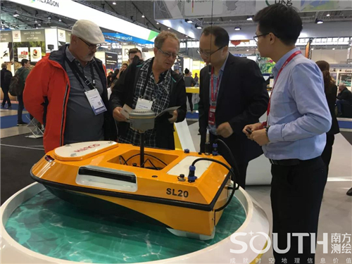 南方SL20智能测量船可实现自主导航、智能避障,可持续进行高强度作业,利用无人船水下测量技术获取水下地形数据精度能够满足大比例尺地形图水下地形测量的精度要求,且在复杂水域条件下,能够大大降低测绘人员的劳动强度,成倍提高外业测量效率,避免外业人员水上作业的危险。南方创新型智能测量船船以“高精度、自动化、高效益”的特点,也成为本次展览的“宠儿”。