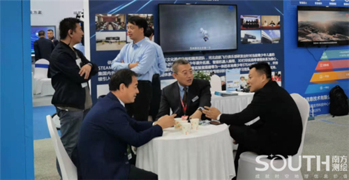 PA视讯石家庄分公司总经理孟祥光(中)同来宾探讨地理信息产业发展