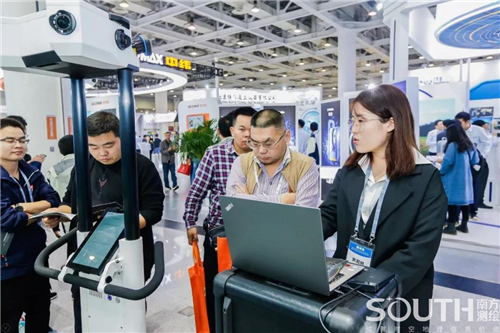 宣讲结束之后,观众对展品进行观赏和深入了解,南方无人机天巡MF2500和SZT-R250无人机载移动测量系统让观众兴趣盎然,各部分讲解人也以专业和生动的讲解为观众做了产品汇报,开展首日,南方展台始终人头攒动,热闹非凡。
