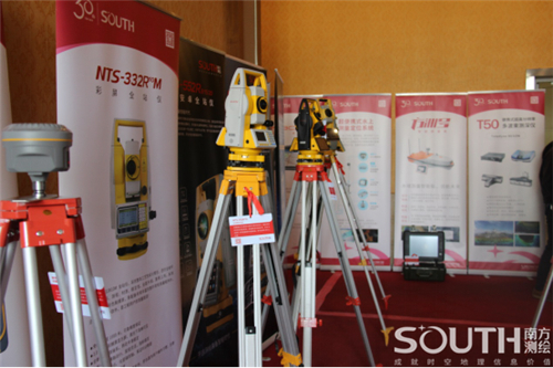 会议展区布展了南方全新的高端仪器设备,其中最新的智能安卓全站仪NTS-552、NTS-582、无人机MF2500备受关注。