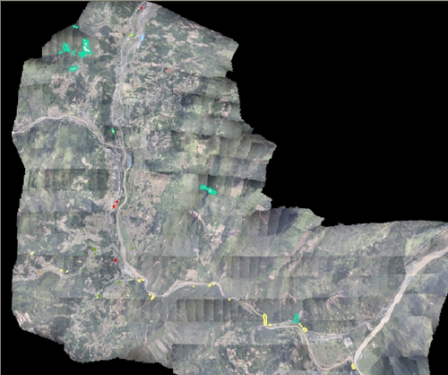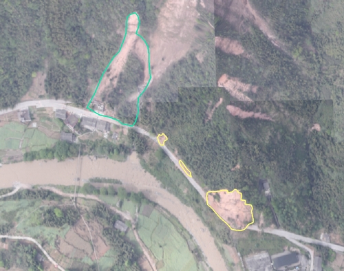 4月20日,为有效防止因地震引发的次生地质灾害给灾区人民带来二次伤害,阻碍救援工作,根据国家测绘地理信息局紧急部署,国家基础地理信息中心在第一时间赶制出雅安地震灾区震后无人机航拍影像图,四川省测绘地理信息局、中国测绘科学研究院连夜对20日获取的宝盛、太平、龙门3乡镇低空无人机影像进行解译,在宝盛乡、太平镇、龙门乡附近初步判定滑坡203处、公路被堵57处。这些次生地质灾害点的发现,为震后次生地质灾害治理和抗震救灾工作开展,提供了重要参考。这些次生地质灾害点已通过基于天地图的“四川省芦山县7.0级地震地理信息发布平台”(http://www.scgis.net/LSXEarthquake/)对外发布,公众可通过该平台查询核心灾区次生地质灾害点位置。