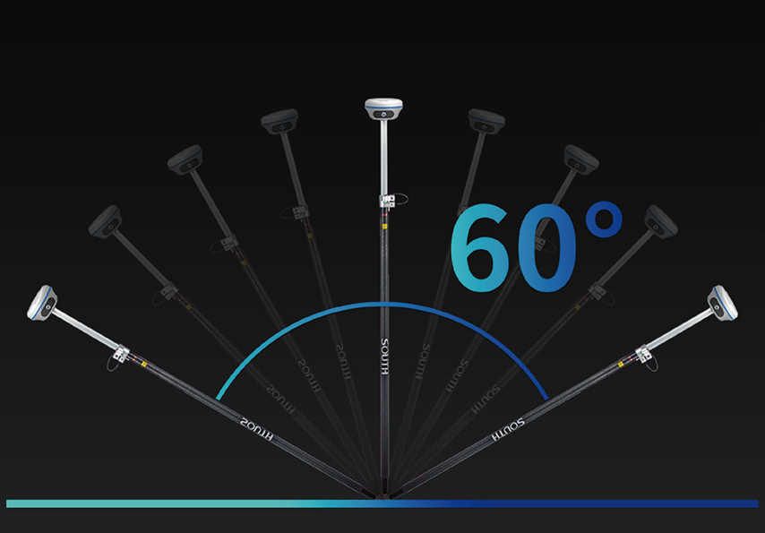惯导倾斜测量 | 内置IMU惯性测量传感器,支持惯导倾斜测量功能,根据对中杆倾斜方向和角度自动校正坐标 |