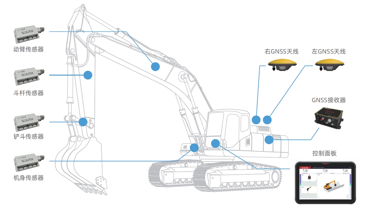 根据设定的参考点计算铲斗与目标作业面的相对高程,通过实时的可视化引导避免超挖或欠挖,确保挖掘作业符合工程精度规格。