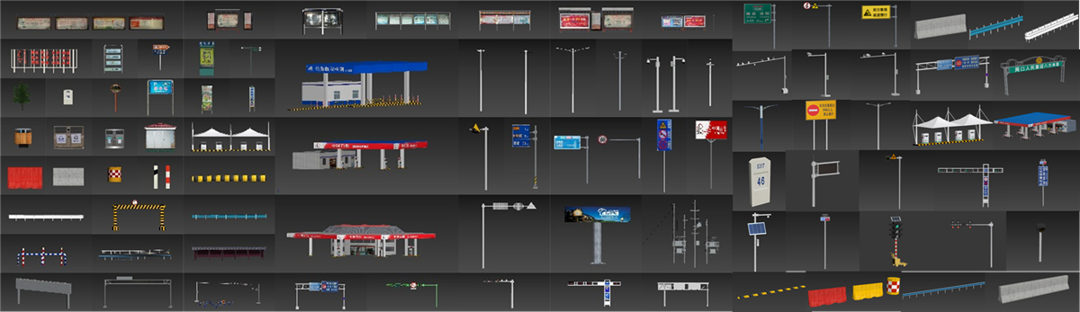 可对常见交通设施、交通标识等进行快速标准化建模,形成完善的高速公路、普通干线公路和轨道交通基础设施、标识孪生库。