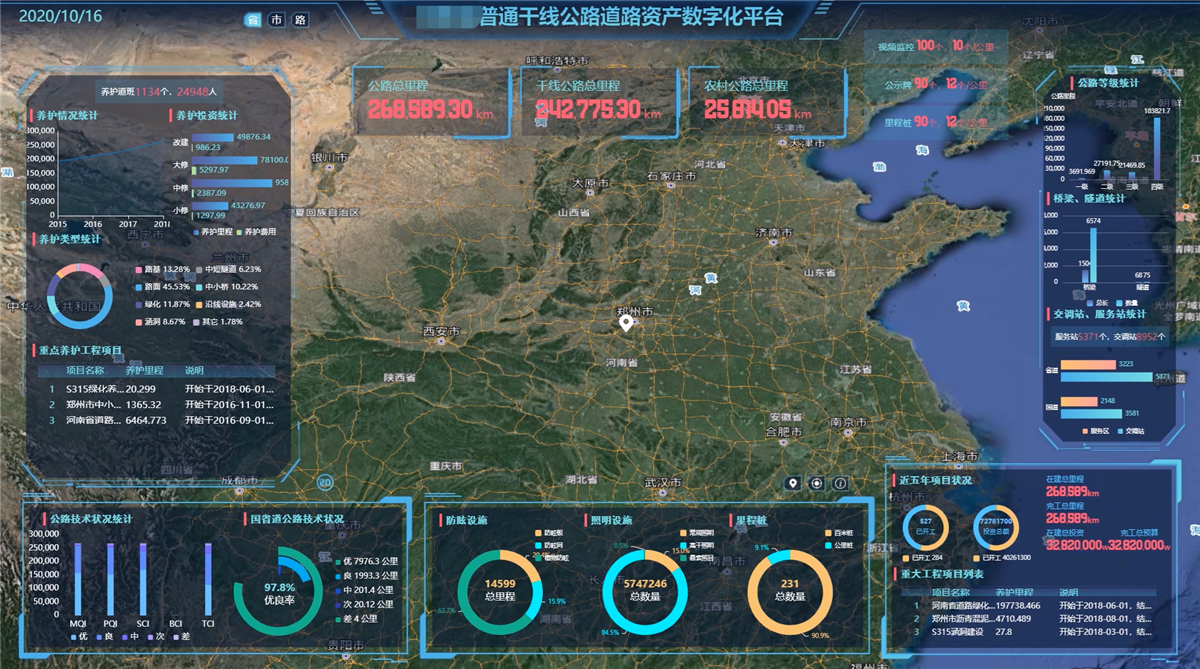 以地理信息数据为基础,融合路网运行、路资养护、绩效考核等数据资产,彰显数据价值和服务效益,提升路资运营水平,支持大屏、多屏、超大分辨率等显示情景。